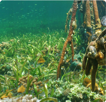 แหล่งหญ้าทะเล คือ ระบบนิเวศที่ดูดซับคาร์บอนได้ดีที่สุด มีพื้นที่น้อยกว่า 0.2 เปอร์เซ็นต์ของพื้นที่มหาสมุทรทั้งหมด แต่กลับกักเก็บคาร์บอนไว้ได้ถึงปีละ 10 เปอร์เซ็นต์